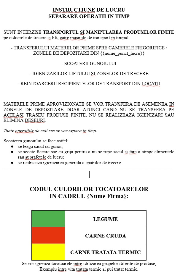 Procedura Contaminare Încrucișată HACCP + Instrucțiune Separație pe timp si culori
