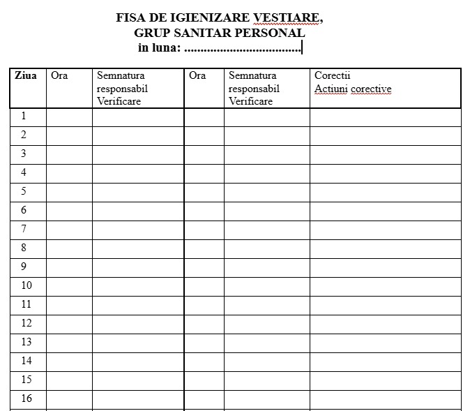 - Tabel / Fisa igienizare toalete si vestiare